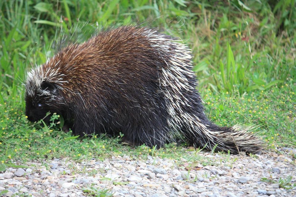 Com estas farpas afiadas, eles se defendem contra ataques de predadores. Quando eriça seus espinhos no modo defensivo, emite um som de alerta característico. O porco-espinho pode pesar até 15 kg. É um animal noturno que se alimenta de tubérculos, raízes, vegetais verdes e, ocasionalmente, carniça.