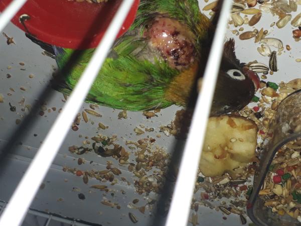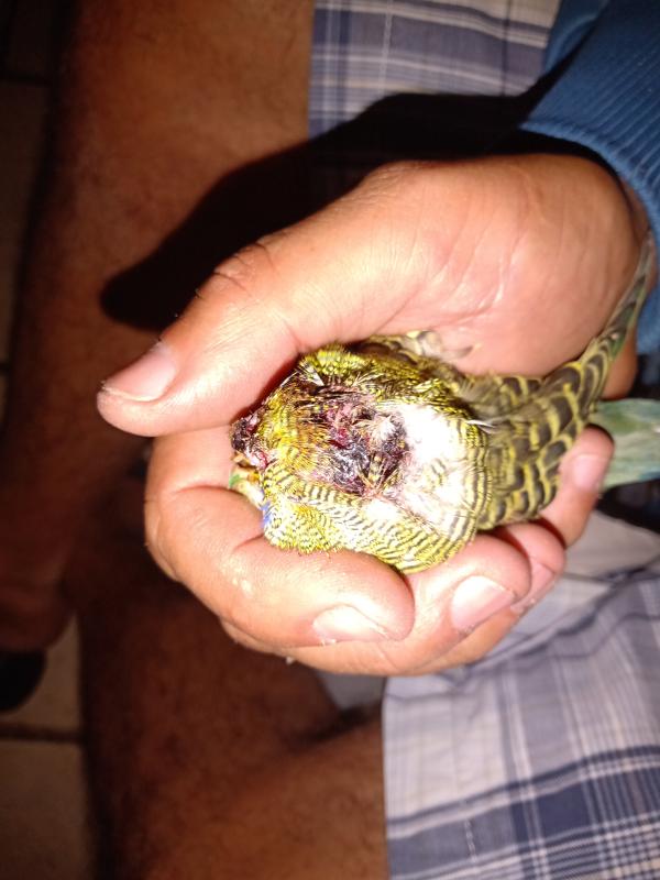 Tenho periquito australiano, e a mãe machucou a cabeça do filhote de quase 1 mês. Onde moro não acho veterinário q atenda aves, o que devo fazer. Cheguei em casa hj e vi isso.