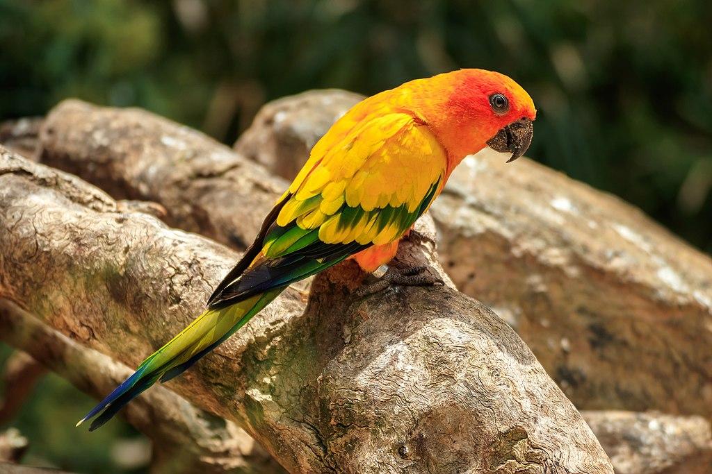 Difícil não se impressionar com as cores dessa raça de aratinga que ocorre principalmente na Amazônia, mas também em outras áreas do Brasil. Ela é pequena e não ultrapassa os 31 cm. Até a conclusão deste artigo seu estado de conservação constava como em perigo pela Lista Vermelha de Espécies Ameaçadas da IUCN.
