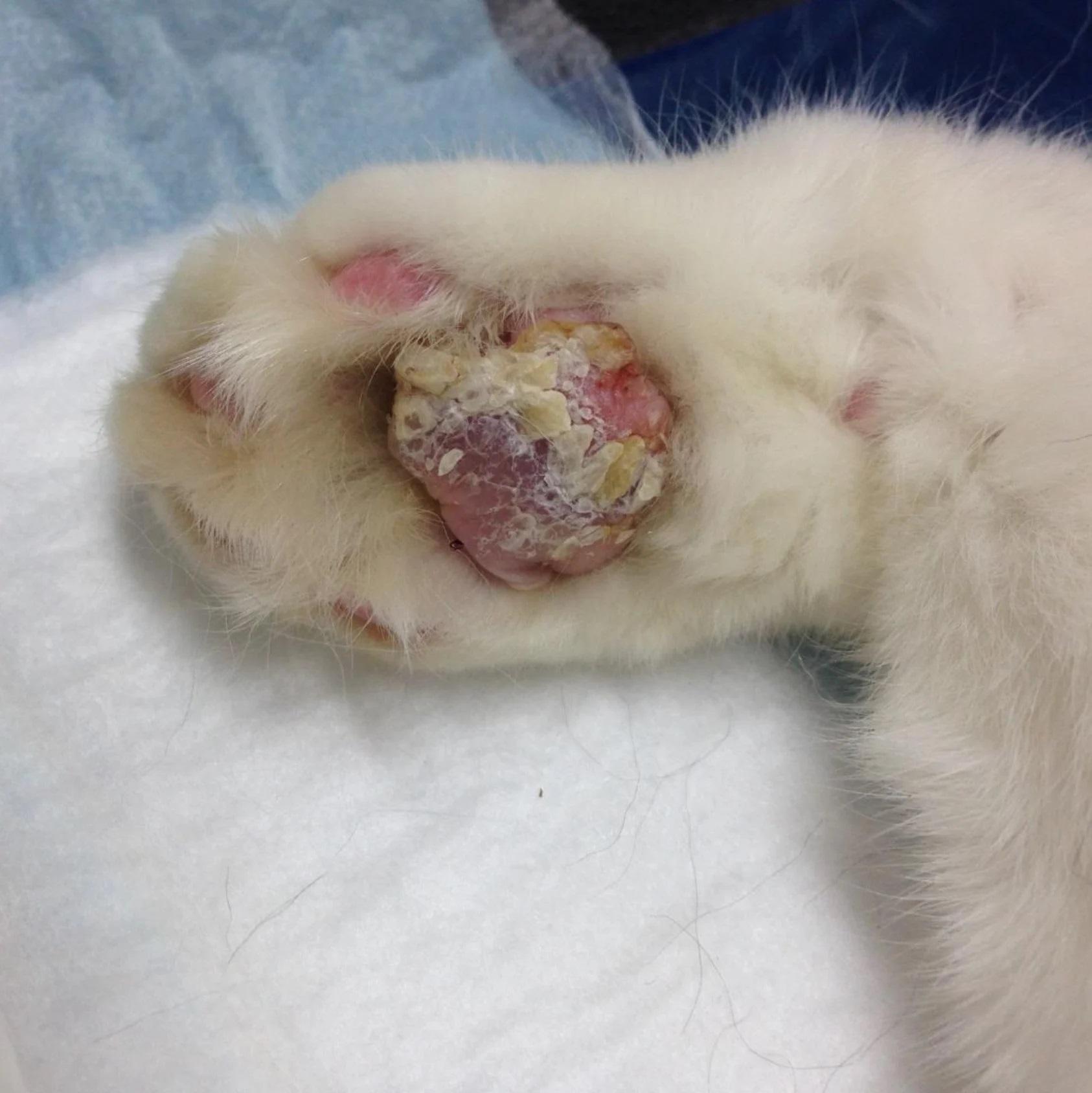 Se esta doença não for tratada, podem surgir infecções secundárias e tanta dor nos gatos afetados que a pata inteira pode inchar e se sensibilizar ao toque. Esta doença é muitas vezes associada à amiloidose renal ou estomatite de células plasmáticas.