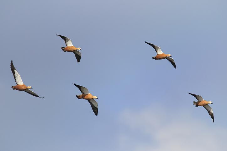 Existe uma espécie de pato que voa e se destaca entre todas as demais pela impressionante altura que consegue alcançar. É o pato-ferrugíneo (Tadorna ferruginea), uma ave que habita a Ásia, Europa e África. Durante a época do verão, habita algumas áreas da Ásia, o norte da África e o oriente da Europa. Por outro lado, no inverno prefere se aventurar nos arredores do rio Nilo e o sul asiático.