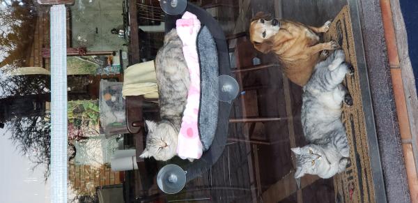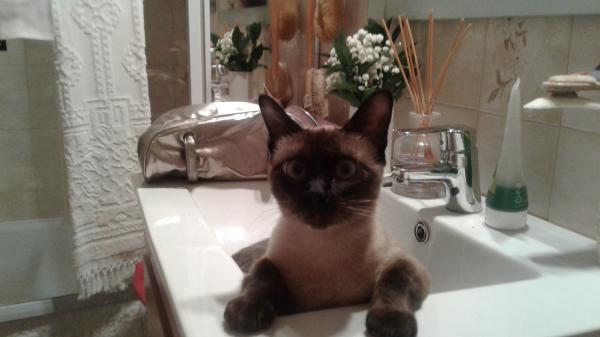 Tenho duas gatinhas adotadas a Mel todavpreta com uns olhos dourados lindissima e muito doce. A Alice uma siamesa de três patinhas pelas maldades que fizeram, uma brincalhona, meiguinha com uns olhos azuis maravilhosos. As minhas paixões de miaus.