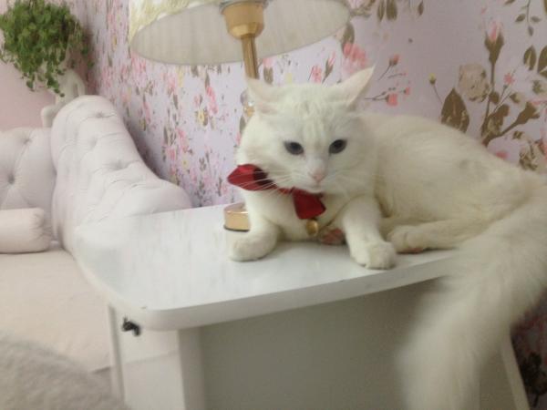 Tirando com os seus familiares, o gato branco geralmente é o mais tímido, distante e por vezes agressivo. Costuma aproveitar qualquer circunstância para lançar o seu golpe. No entanto, e como já foi dito, ele é muito fiel com quem tem a sua confiança.