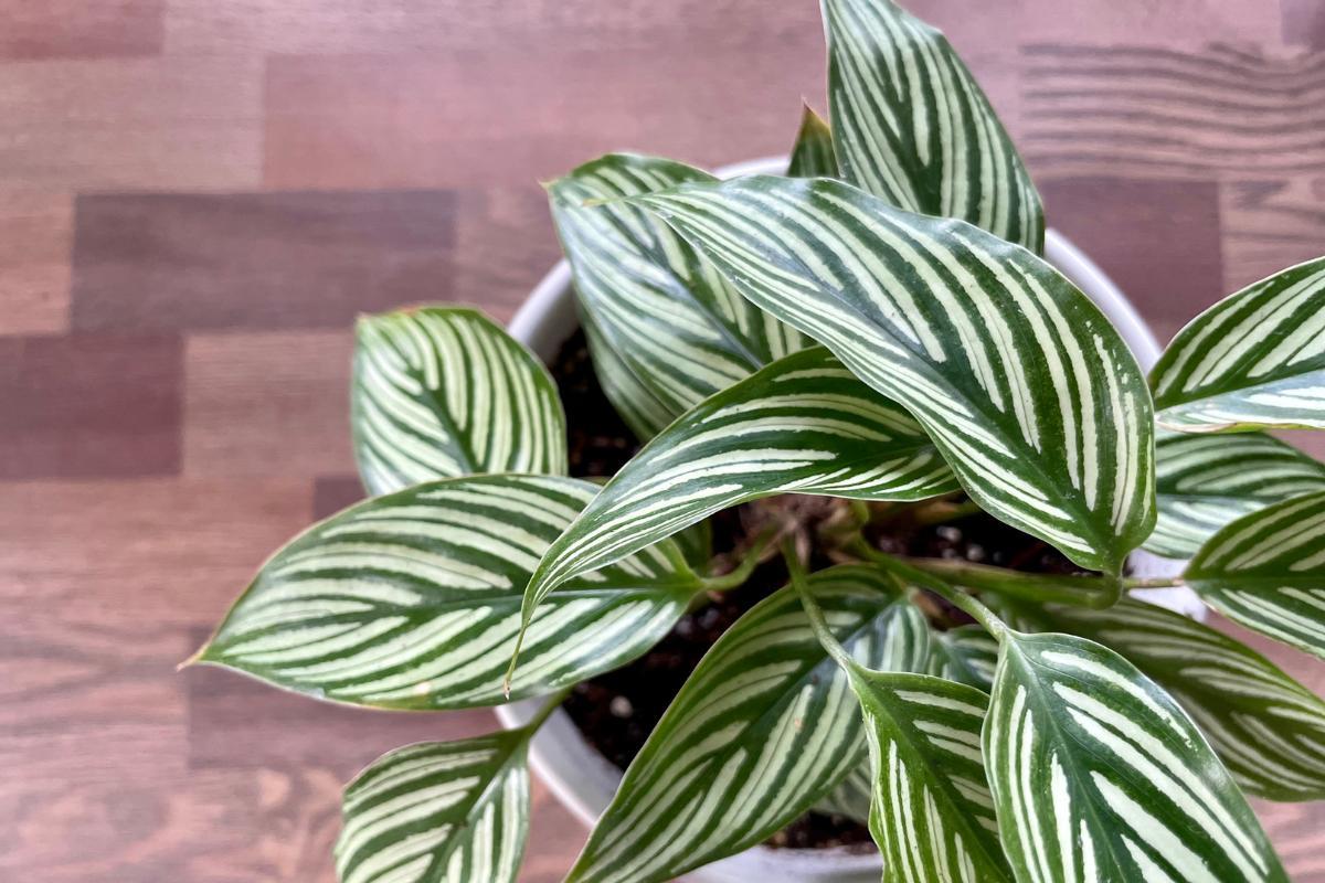 Por fim, temos outra planta de interior compatível com gatos, muito comum em lares, classificada como atóxica: a calathea. É uma planta com folhas coloridas, muito decorativa, que tolera bem a sombra.