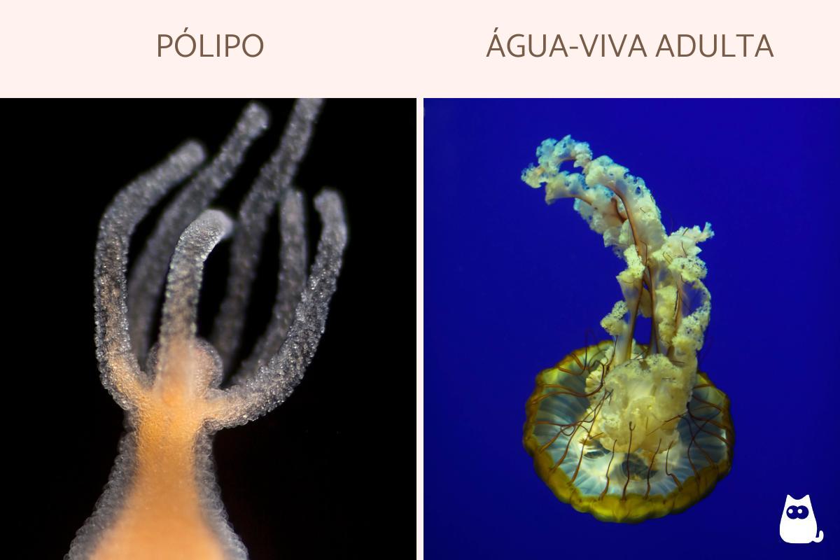 Já vimos que existem pólipos que se transformam em águas-vivas, portanto, em alguns casos, ambas as formas fazem parte do mesmo ciclo de vida. Em outros, estamos falando de espécies diferentes. Vamos ver as diferenças: