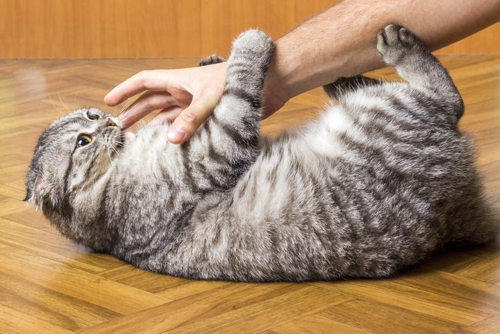 Em alguns casos, você pode estar acariciando o seu gato de forma relaxada e, sem aviso prévio, ele se incomoda e começa a te atacar com raiva, mordendo e arranhando você com as patas traseiras. Nesta situação inesperada, o seu gato pode ter ficado chateado, pois você cruzou a linha quanto ao que ele pode e não pode tolerar. Ou seja, é possível que seu gato estivesse tranquilo e que, de repente, você tenha tocado alguma parte do seu corpo que ele não gosta, como a barriga, uma vez que é uma área muito vulnerável para eles. Vale a pena notar que se o seu gato nunca teve esse comportamento antes quando você tocou uma área do corpo dele, mas agora você notou que ele fica particularmente agressivo, isso pode significar que ele está sentindo dor (assim como se você notar outro comportamento estranho ou mudanças de hábito). Nesse caso, é aconselhável levá-lo ao veterinário.