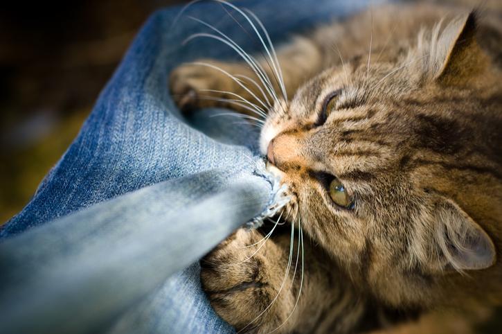Como resultado do estresse, o gato buscará saídas para tentar acalmar seus nervos e conseguir tranquilidade. Isto pode ser manifestado de várias formar, e uma delas pode ser morder a roupa ou qualquer tecido que esteja a seu alcance.