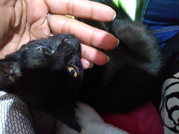 Peguei dois filhotes abandonados, tem sido uma experiência única, estou dando leite especial para eles e cuidando como se fossem filhos, eu e minha esposa nos apaixonamos por eles. Porém não abriram os olhos ainda, mas mesmo assim um deles sai remela ou pus xv, estamos limpando com soro. Isso é normal?