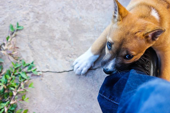 Além da necessidade que eles têm de explorar tudo com a boca e aliviar a dor causada pelo crescimento dos dentes, nesta fase, existe principalmente uma causa que explica a razão desse comportamento. Você já reparou que os objetos em movimento são aqueles que mais motivam o seu filhote? Isso ocorre porque elementos em movimento geram uma resposta instintiva à perseguição em seu amiguinho peludo. Por esse motivo, o movimento de seus pés ao caminhar desperta seu instinto e seu desejo incontrolável de brincar, assim como acontece quando ele vê uma bola quicar. Ainda mais se você usar calças largas ou sapatos com cadarços, que são móveis e podem ser puxados, tornando a "brincadeira" mais divertida.