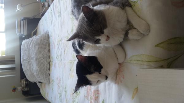 Boa tarde, tenho procurado referências sobre gatinhos para ver se alguém tem ou teve experiência similar à minha: tenho 2 gatinhas de 2 anos e 7 meses, ambas resgatadas. São totalmente diferentes nos comportamentos, mas uma delas, conversa, juro, conversa em gatês comigo. Não é miado, são sons diferentes pra cada situação e entendo tudo. É impressionante, o tempo todo, ela fala. O nome dela é Nina. Se estamos as três na cama e eu levanto, ela faz um som, tipo "aonde vc vai", então respondo e tudo bem, ela me espera ou vem atrás de mim. Se quer comer, ela me chama, pq só come se eu estiver perto e se não vou, faz um som forte, de brava e ainda mexe com a cabeça indicando a direção. É mto engraçado, se quer que eu a siga para alguma brincadeira tb me chama e assim vai, e mto faladeira mesmo. Minha filha e amigos acham incrível o tanto que conversamos. Já a outra e quieta (ufa, ainda bem), toma conta da casa, é mais sociável, fica rondando os amigos que vêm em casa, mas não é chegada em carinho, costuma morder se faço carinho e só aceita algo rápido na cabecinha qdo fica roçando na minha perna. Seu nome é Iolanda, que chamo de Ioiô. São meus anjinhos. Mas, a gatinha faladeira é super amorosa, sempre colada em mim e é a que manda e domina a outra nas lutinhas. É ela que me intriga, com tanta conversa, o tempo todo, que não esta dormindo, é se comunicando comigo através de sons. Alguém tem essa experiência ? Conheço muitas gateiras e ninguém vive isso, acho mesmo um privilégio essa gatinha na minha vida. Nina é a branquinha e Ioiô a cinza.