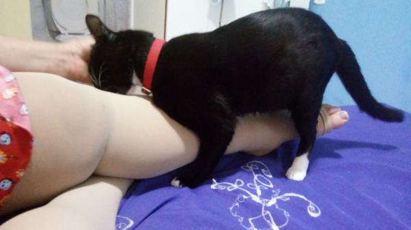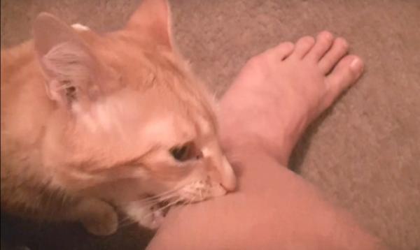 Meu gato esta mordendo a minha perna e parece esta trepando. Pois além de babar um pouco ainda sai um liquido do pinto. Ela ainda n esta castrado. O que ele esta fazendo e pq só faz isso em mim?