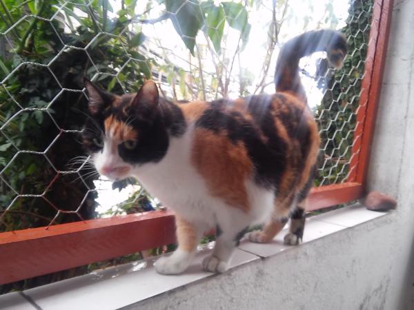 Tenho uma linda gata tricolor, seu nome é Jurema, está com 12 anos, é uma gata amorosa e manhosa.. Tenho 6 ao todo, são 3 casais de gatos.