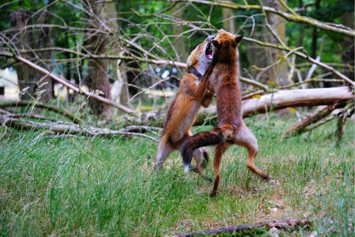 As raposas podem ser predadoras entre si, especialmente em situações em que há competição por recursos limitados, como alimento e território. A dinâmica predatória entre raposas é mais comum em áreas onde a densidade populacional é alta e os recursos são escassos. Nessas circunstâncias, raposas adultas podem competir por presas, como roedores e aves, assim como por território e tocas para se abrigar. A competição pode resultar em confrontos agressivos, onde raposas mais fortes ou dominantes buscam estabelecer sua supremacia sobre outros indivíduos, sejam da mesma espécie ou de outra.