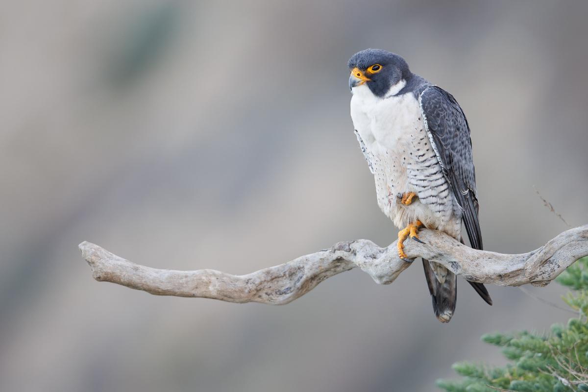 O falcão-peregrino é uma ave de rapina de tamanho médio, conhecida por ser a ave mais rápida do mundo. Seu comprimento varia entre 34 e 58 cm, e tem uma envergadura de 80 a 120 cm. Sua plumagem é cinza-azulada escura nas costas e branca com faixas pretas no ventre. A cabeça tem um capuz preto que os distingue entre os demais. Os falcões-peregrinos habitam em todo o mundo, adaptando-se a diversos ambientes, desde áreas rurais e montanhosas até ambientes urbanos.
