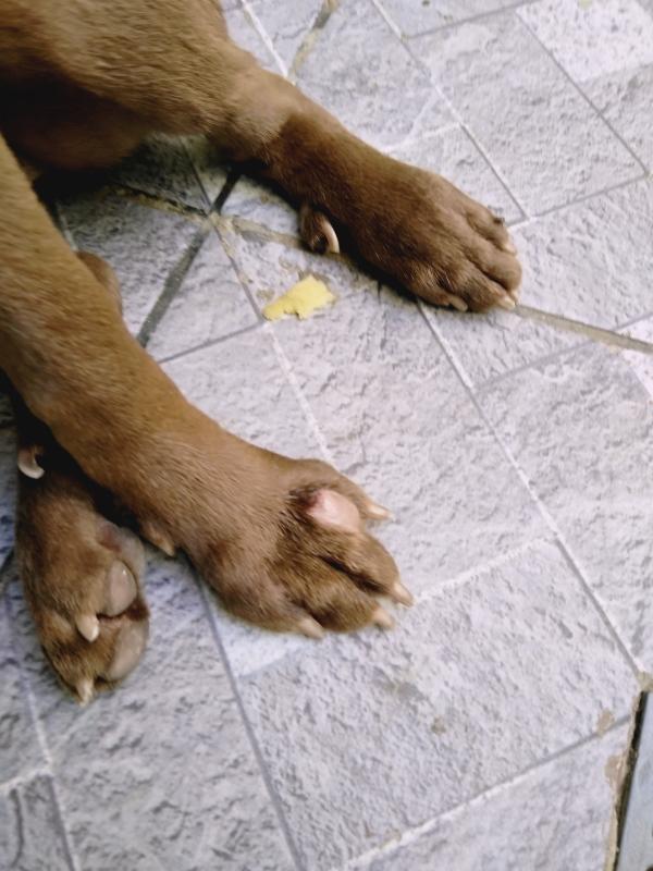 Minha Sharpei tem 6 meses e apareceu essa lesão na pata após um passeio,além de secreção de pus na vulva.
