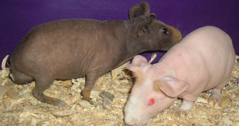 Porquinho da Índia raça Skinny e da raça Baldwin