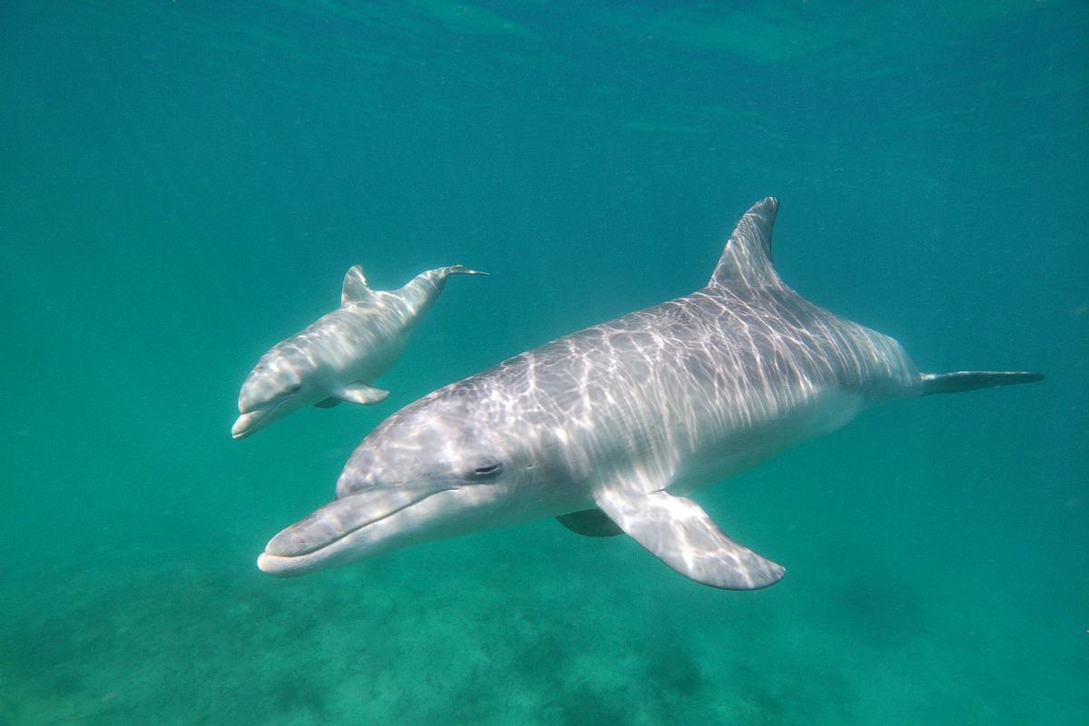 - Nascimento: quando um golfinho nasce, ele já pode nadar e se movimentar por conta própria, ou seja, é independente nesse sentido, mas ainda depende da mãe para se alimentar e aprender comportamentos próprios do grupo, como caça e fuga de predadores;