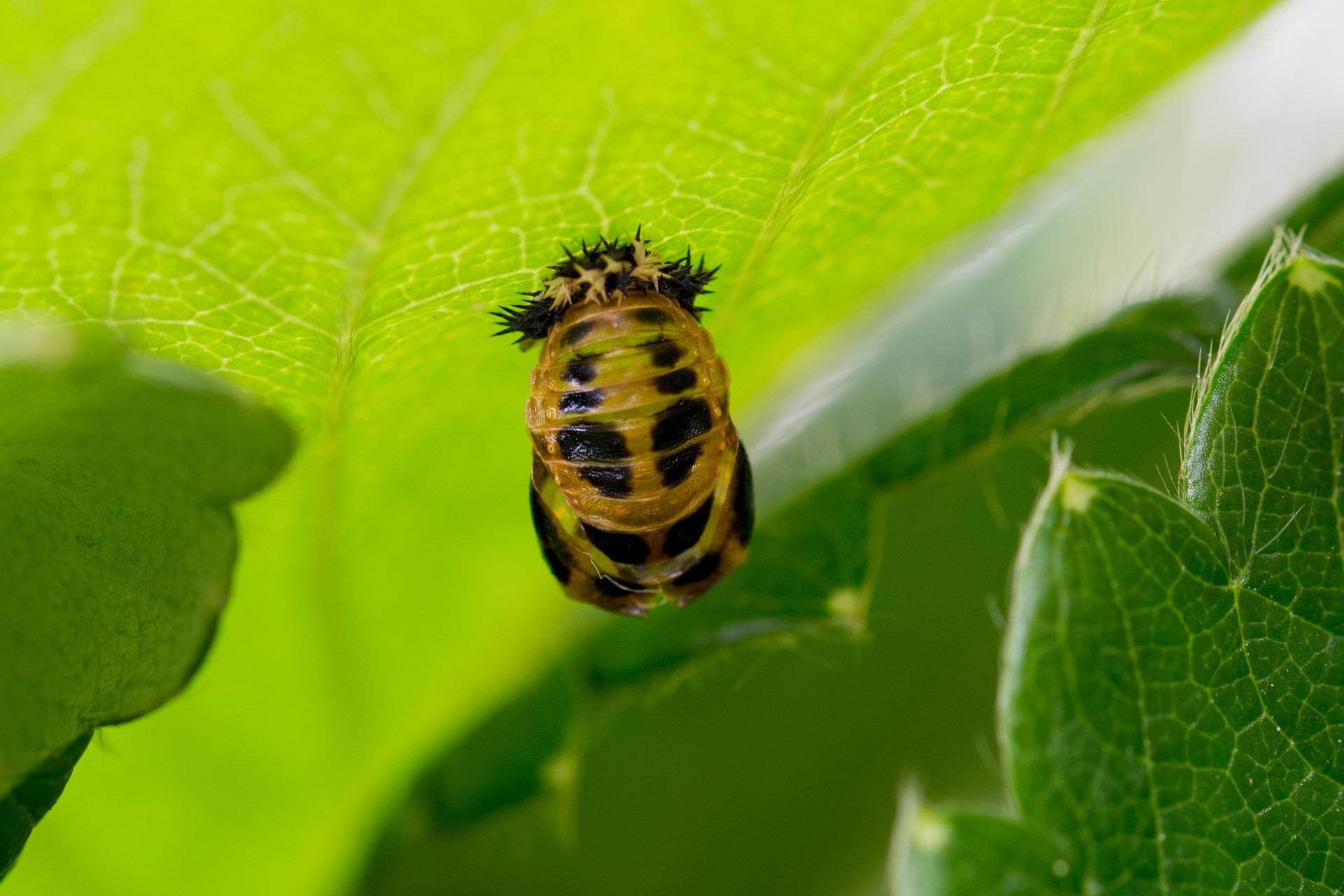 Para melhor visualizar o desenvolvimento e o ciclo de vida de uma joaninha, tomaremos como exemplo a joaninha-de-22-pontos (Psyllobora vigintiduopunctada), que é mostrada na imagem em seu estágio larval. Se você quiser saber mais sobre outros tipos, não perca nosso artigo sobre Tipos de joaninhas.