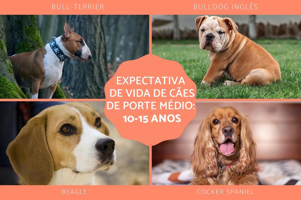 Os cachorros de raças de médio porte, como o beagle, o cocker, o bull terrier ou o bulldog inglês, têm uma expectativa de vida de 10-15 anos. Em outras palavras, eles têm uma vida um pouco menos longa do que os cães de raças de pequeno porte.