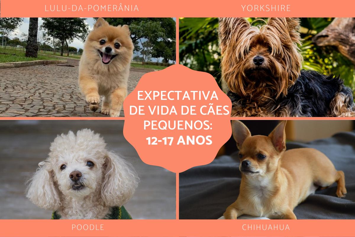 Os cachorros de raças de pequeno porte, como o chihuahua, poodle, pinscher, lulu-da-pomerânia ou yorkshire, vivem cerca de 12-17 anos. Entretanto, há inúmeros relatos de indivíduos de raças pequenasque ultrapassaram os 20 anos de idade. Afinal, como você já viu, diferentes fatores são relevantes para determinar quanto tempo vive um cachorro.