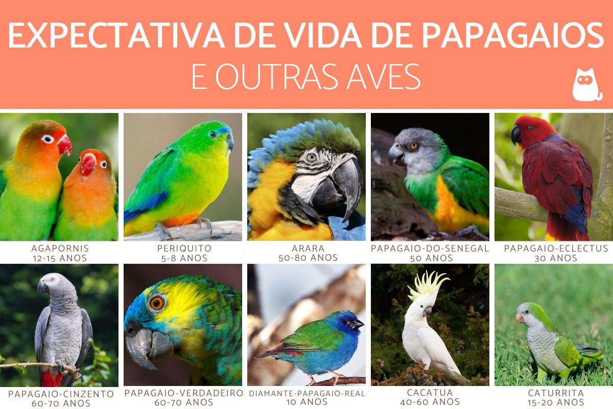 A expectativa das aves varia muito de acordo com cada espécie. Como regra, as espécies de menor porte, tais como os agapornis, os periquitos e as calopsitas têm uma vida mais curta, enquanto as de maior porte, tais como os papagaios e araras, têm uma vida mais longa. A seguir, detalhamos quantos anos vivem em média algumas aves em cativeiro: