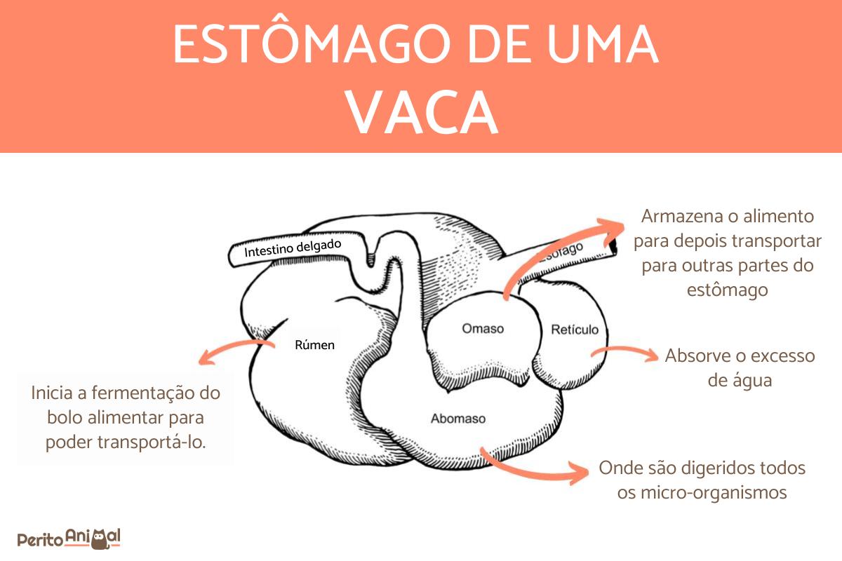 O estômago desses animais é formado por quatro compartimentos ou câmaras, o que confere complexidade a esse sistema orgânico, razão pela qual normalmente se diz que as vacas têm quatro estômagos.