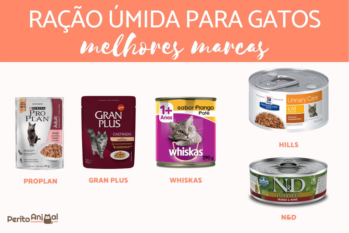 Portanto, para evitar problemas urinários e renais que podem resultar desta situação, recomenda-se, pelo menos, uma alimentação mista. Ou seja, misturar ração e alimentos úmidos, diariamente. A comida úmida fornece aproximadamente 80% de líquido. Além disso, ao contrário da crença popular, ele contém menos calorias do que a ração seca. É por isso que oferecer ração úmida e sachê para gatos é recomendado para gatos obesos ou com excesso de peso. Eles gostam da ração úmida porque ela é muito palatável, hidrata e os satisfaz. Para facilitar a escolha, o PeritoAnimal selecionou melhores marcas de ração úmida para gatos. Veja a seguir.