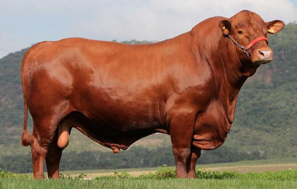 A raça de gado brahman surgiu em 1915, nos Estados Unidos, a partir do cruzamento das raças nelore, guzerá, gir, valley e sindi, de animais vindos da Índia e Brasil. Este animal possui pelagem nas cores branca e vermelha. O touro pesa de 720 a 990 quilos.