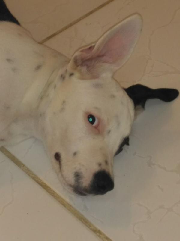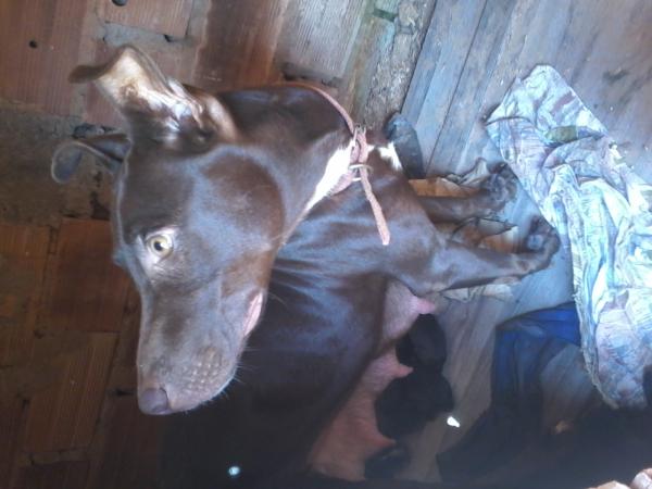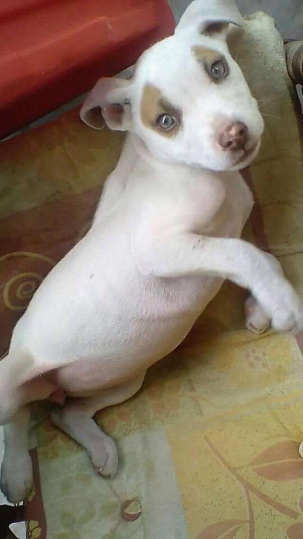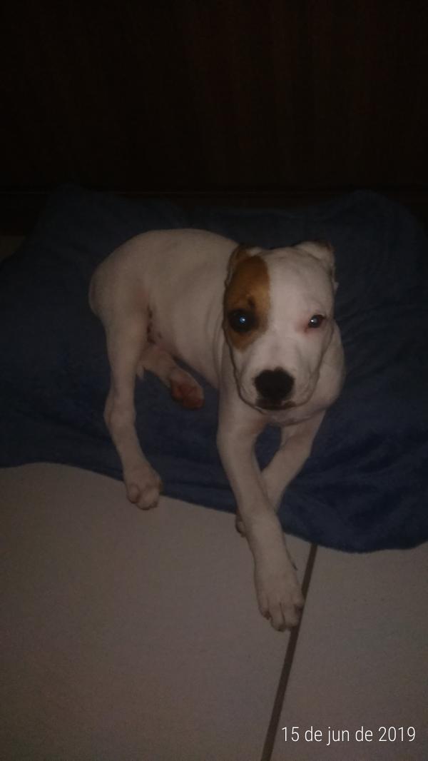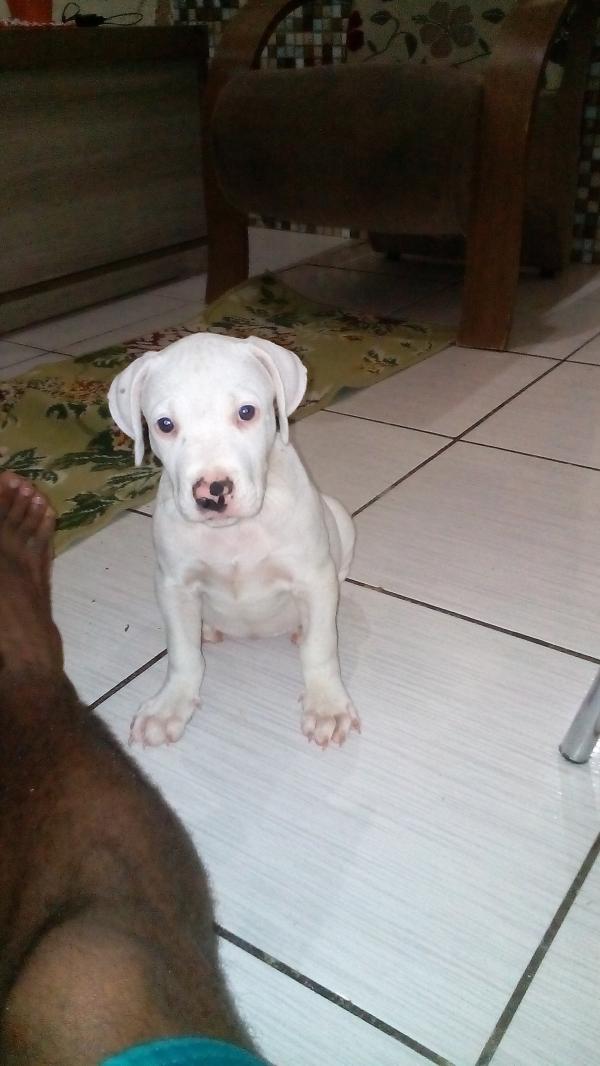 Ganhei esse lindo cachorro a pessoa me informou que a mãe e pitbull e o pai é American bully porem nunca vi os pais dele
