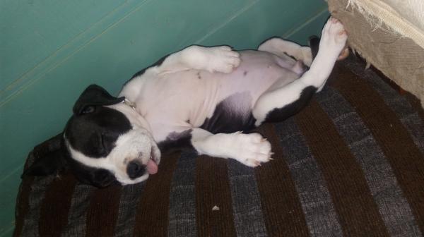 Boa tarde, a Pitbull da minha mãe é uma Red Nose e cruzou com um Shiatsu, minha filhote ficou assim, posso tratar ela como uma Pitbull ou como uma cadelinha normal? ela vai fazer dois meses e a brincadeira dela é bruta, como saber com qual raça ela mais aparenta?