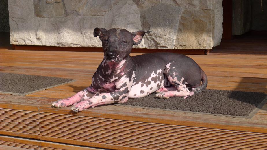 - Se o cão-pelado-peruano for exposto a raios solares: é necessário aplicar protetor solar, especialmente se as saídas forem realizadas durante as principais horas do dia, quando os raios solares são mais potentes, para evitar queimaduras e irritações.