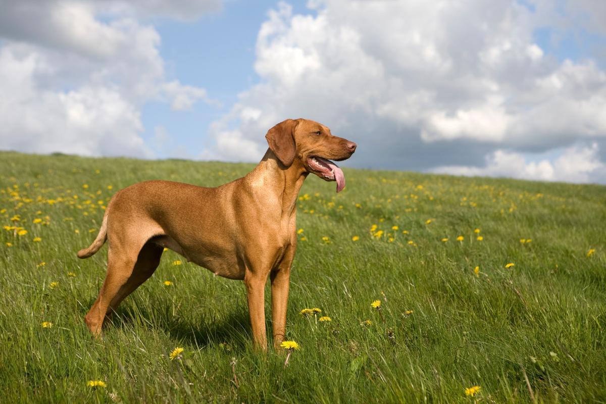 Conhecido como vizsla ou braco-húngaro-de-pelo-curto, é importante destacar que existe também a versão de pelo duro. Essa raça de cães com V tem origem na Hungria, onde era tradicionalmente usada como cão de caça. De porte médio e aparência elegante, seu pelo é muito curto e apresenta uma cor dourada amarelada.