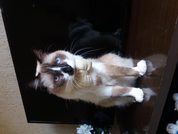 Meu Juninho é um snowshoe e ele é muito lindo, fofinho, carinhoso e cheinho de estilo é um verdadeiro príncipe, nos passeios que damos ele chama atenção e eu fico toda orgulhosa do meu filho.