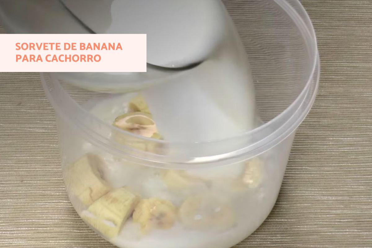Siga os passos abaixo para aprender como fazer um sorvete de banana com bebida de arroz para cães em casa.