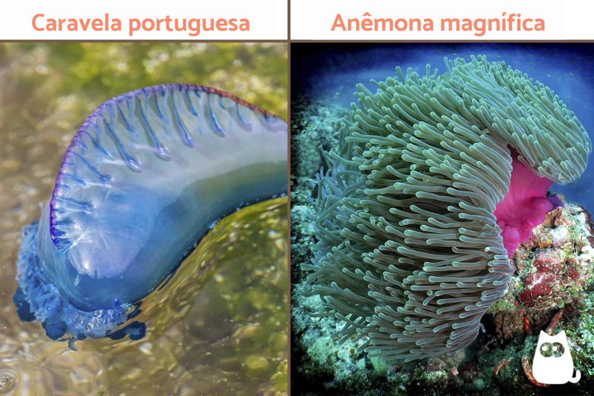 - Caravela portuguesa (Physalia physalis): não se trata de uma medusa, mas de uma colônia flutuante formada por pequenas medusas.