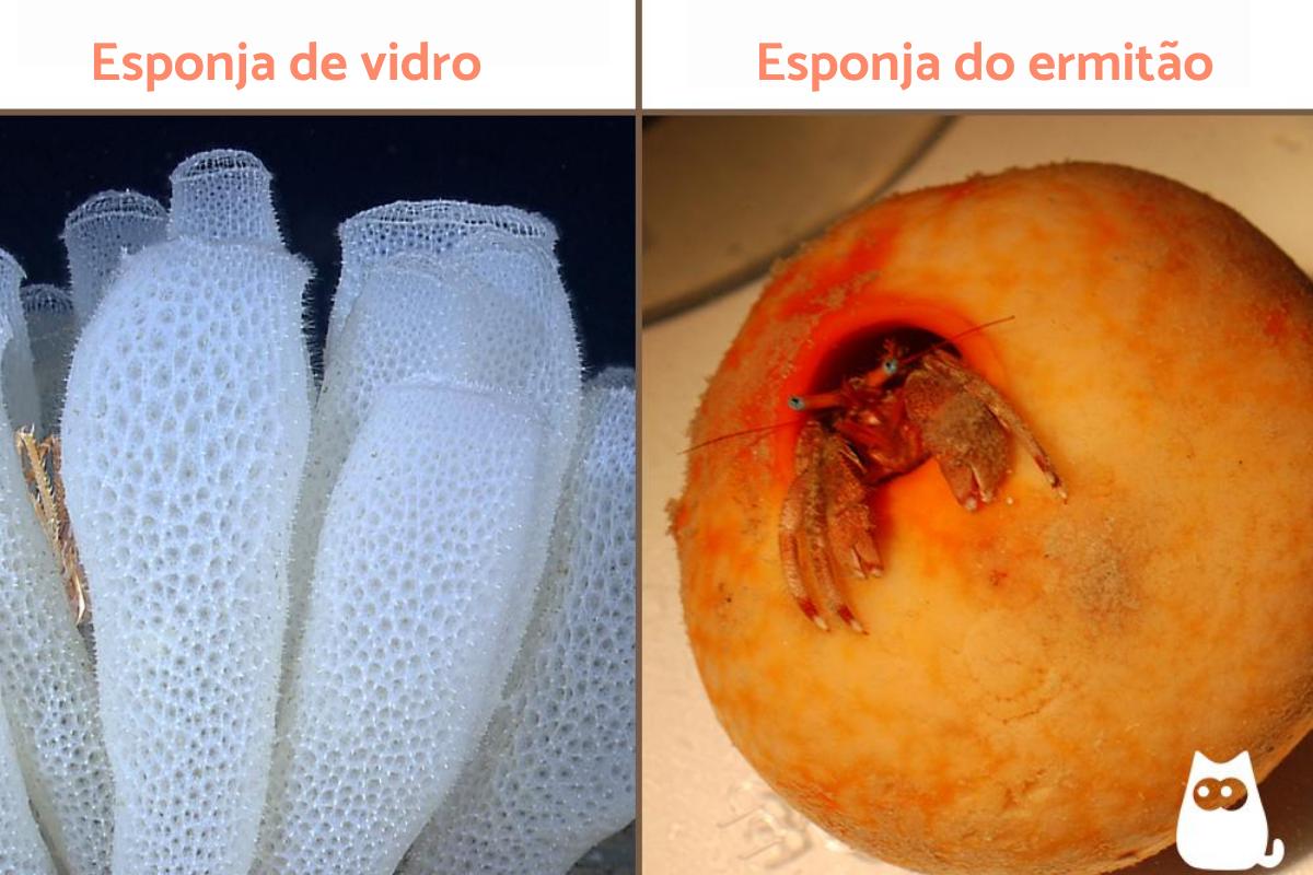 - Esponja de vidro (Euplectella aspergillum): abrigam um casal de crustáceos do gênero Spongicola que ficam agarrados nela.