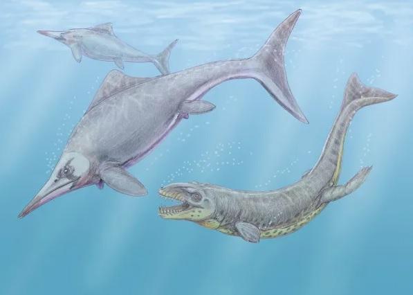 - Sauropterígios: um grupo de répteis aquáticos que viveram na era Mesozóica entre 251 e 66 milhões de anos atrás. Alguns mediam até 12 metros de comprimento.