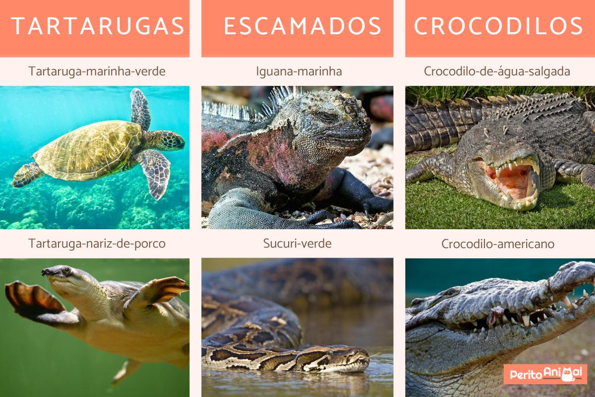Dentro dos três primeiros grupos encontramos os diferentes tipos de répteis aquáticos (marinhos e de água doce), enquanto que as espécies pertencentes à última ordem são de hábitos exclusivamente terrestres. Assim, vamos conhecer alguns exemplos concretos de répteis aquáticos: