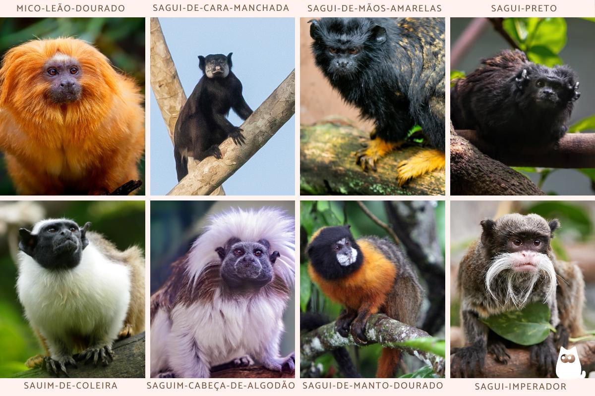 Embora o grupo dos saguis seja diverso, aqui estão algumas das espécies mais conhecidas: