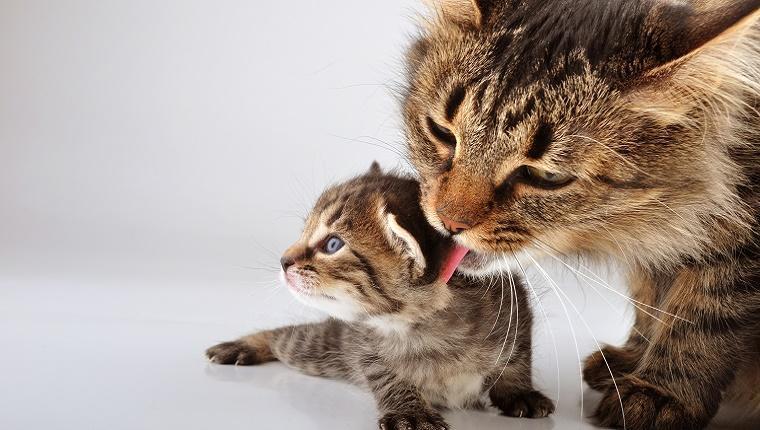 Durante as primeiras semanas, a gata comerá de forma abundante, procurará repouso e tranquilidade, dar-lhe-à afeto e pode inclusive estar um pouco desorientada devido à nova situação. Neste momento é muito importante oferecer-lhe alimento de qualidade (específico para filhotes), um lugar confortável para descansar e todo o amor do mundo.
