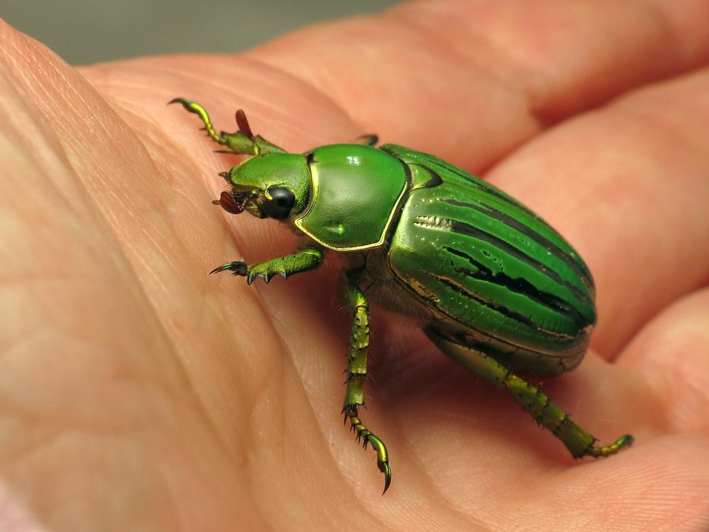 Outra classe de besouros grandes é o Mayate (Cotinis mutabilis). Esta espécie pode ser encontrada no México e nos Estados Unidos. Destaca-se por sua cor, já que seu corpo apresenta um tom verde brilhante muito marcante. O Mayate é um besouro que se alimenta de esterco. Além disso, é outro tipo de besouro voador.