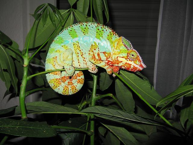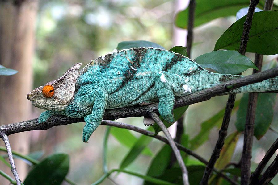 - O camaleão-pantera é uma das espécies favoritas para manter em cativeiro. É originário de Madagascar, especificamente do Nordeste, Leste e Norte do país. Têm um bom tamanho, sem serem gigantes e, além disso, são muito resistentes e altamente adaptáveis. Podem alcançar até 55 cm, embora seja comum que atinjam apenas 45 cm;