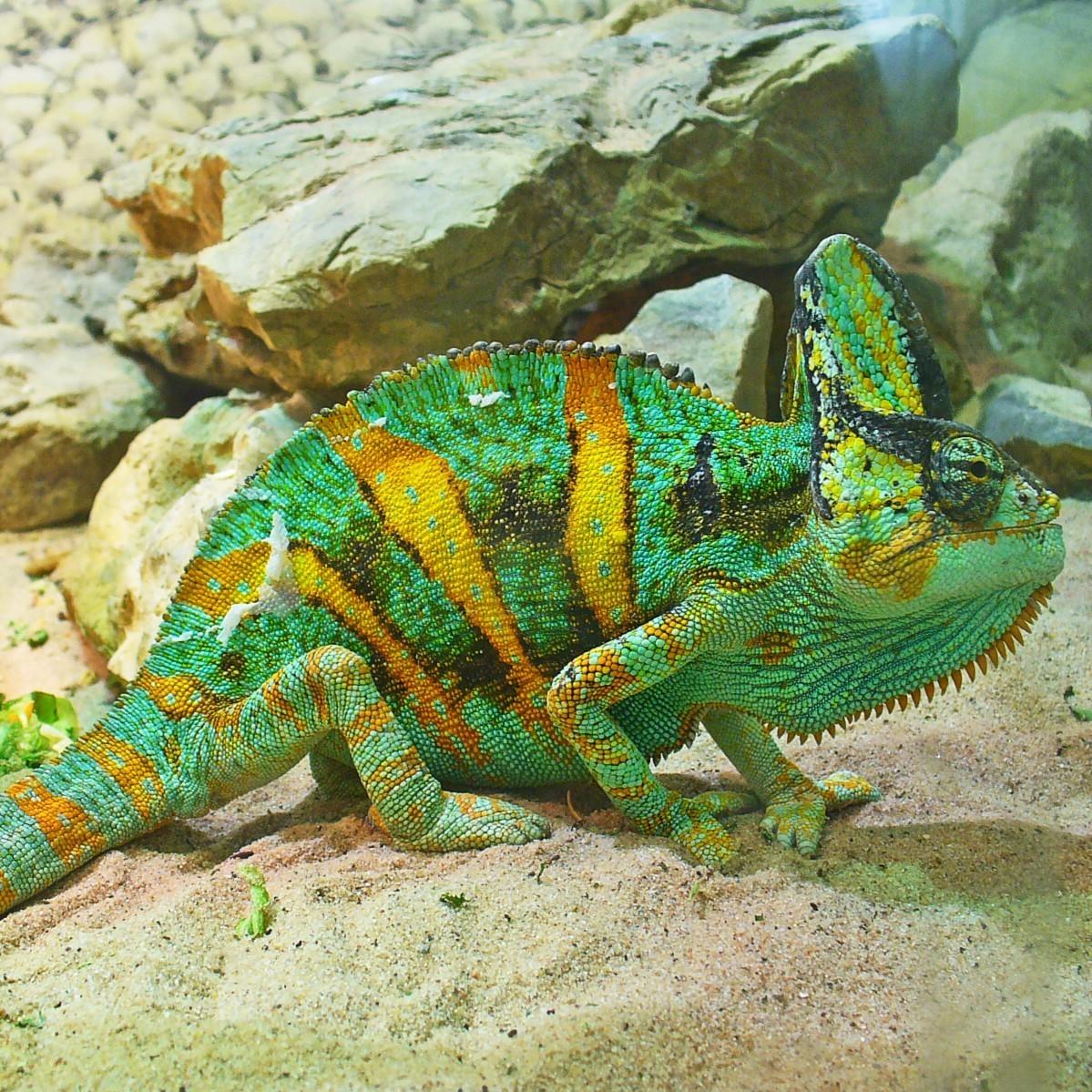 - O camaleão-de-jackson é um animal muito característico devido aos 3 chifres que possui, o que lhe confere a aparência de um tricerátopo vivo. Nativo da África Oriental, são animais tranquilos, desde que não se juntem 2 machos na mesma jaula, pois são muito territoriais. As fêmeas desta espécie dão à luz crias vivas;