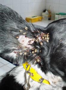 Para ler mais sobre essas patologias, recomendamos que você leia nosso artigo sobre as doenças que os carrapatos podem transmitir. Na imagem abaixo, é possível ver uma infestação avançada de carrapatos vermelhos na orelha de um cão adulto, que pode ser a porta de entrada para várias das doenças mencionadas anteriormente.