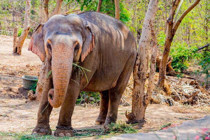 Oriundo da ilha do Sri Lanka, é o maior dos elefantes asiáticos, com mais de 3 metros de altura e 6 toneladas de peso.
