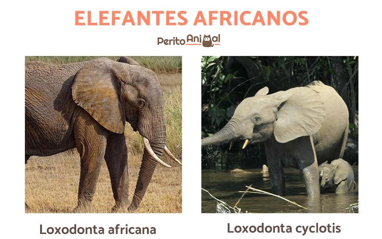 Dentro da espécie dos elefantes africanos, encontramos duas subespécies: o elefante-da-savana e o elefante-da-floresta. Embora sejam consideradas subespécies da mesma espécie até agora, alguns especialistas acreditam que são duas espécies geneticamente diferentes, porém isso ainda não foi demonstrado conclusivamente. Eles têm orelhas grandes e presas importantes, que podem medir até 2 metros.
