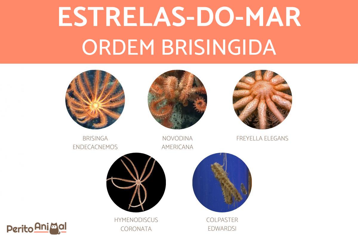 A ordem Brisingida está formada por duas famílias Brisingidae e Freyellidae, com um total de 16 gêneros e mais de 100 espécies. Algumas delas são: