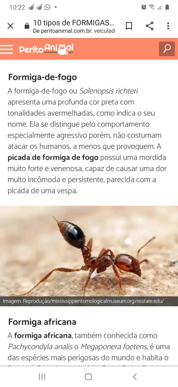 Existem milhões de formigas em todo o mundo, pertencentes a vários tipos de espécies que foram registrados. No entanto, nem todas são formigas venenosas. De forma geral, os tipos de formas domésticas costumam ser inofensivas e suas eventuais mordidas não representam um problema para os humanos.