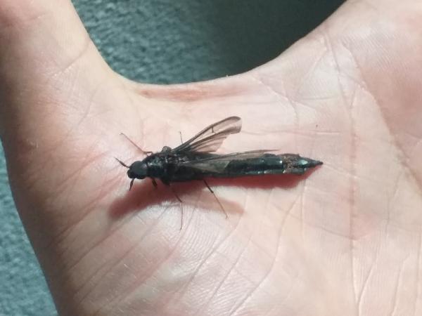 Que inseto é esse ele voa estranhamente pois corpo e asas parecem desproporcional, mas a curioso pois parece uma especie de formiga com cauda e asas.