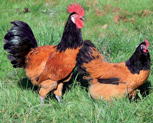Imponente, essa galinha de origem alemã pode ser avistada em muitas cores, sólidas ou misturadas, do branco ao preto, sendo que nos machos a crista sempre é rosada.